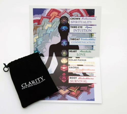 Included with your set is a 5″ x 7″ fold-out color chart that details each stone’s chakra correspondence and healing qualities, guiding you through the placement and use of the crystals during meditation or healing sessions.